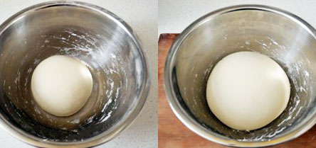 將絮狀面和成面團(tuán),反復(fù)揉面,揉至表面光滑、細(xì)膩。然后蓋上等待發(fā)酵,面團(tuán)發(fā)酵至原來的2倍大,就發(fā)酵好了。